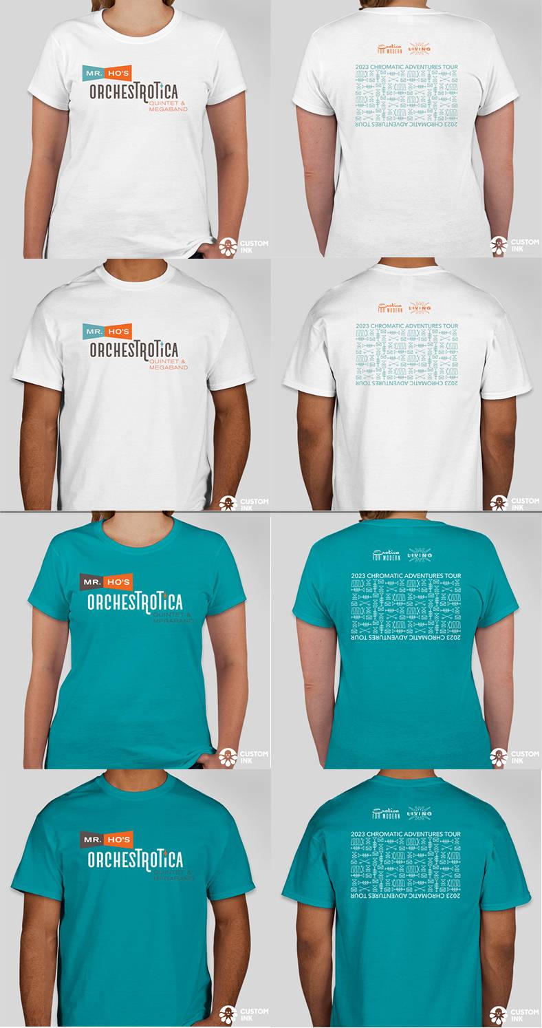 For the upcoming tour, we'll be ordering a new t-shirt design to sell in the store (and at shows) in mens and womens cuts. However, there will only be (1) color choice for this new 2023 tour shirt: white or teal! PLease vote only once. Help us decide now and optionally pre-pre-order here: